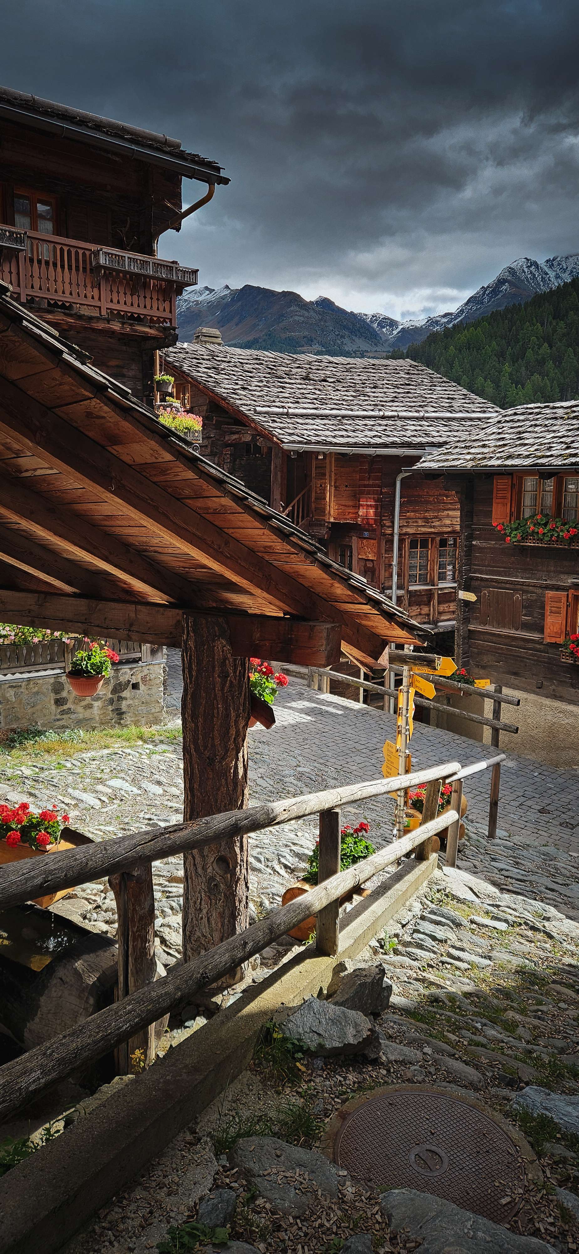 The road climbs high above the valley until Grimentz reveals itself — a picturesque alpine village where tradition and dazzling mountains welcome you.